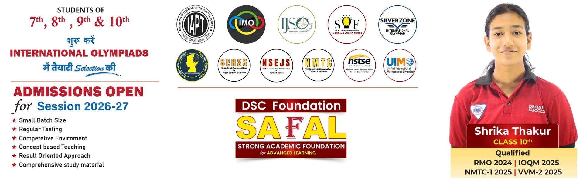 The Results Define Us: Definite Success Classes is defined by a proven track record of excellence in India's most competitive exams. We have consistently produced top rankers across NEET, JEE (Main & Advanced), and various National Olympiads. This legacy of success is a direct testament to the efficacy of our dedicated methodology and expert faculty. Enroll today to join a tradition where our structured guidance transforms your high aspirations into tangible, top-tier achievements.